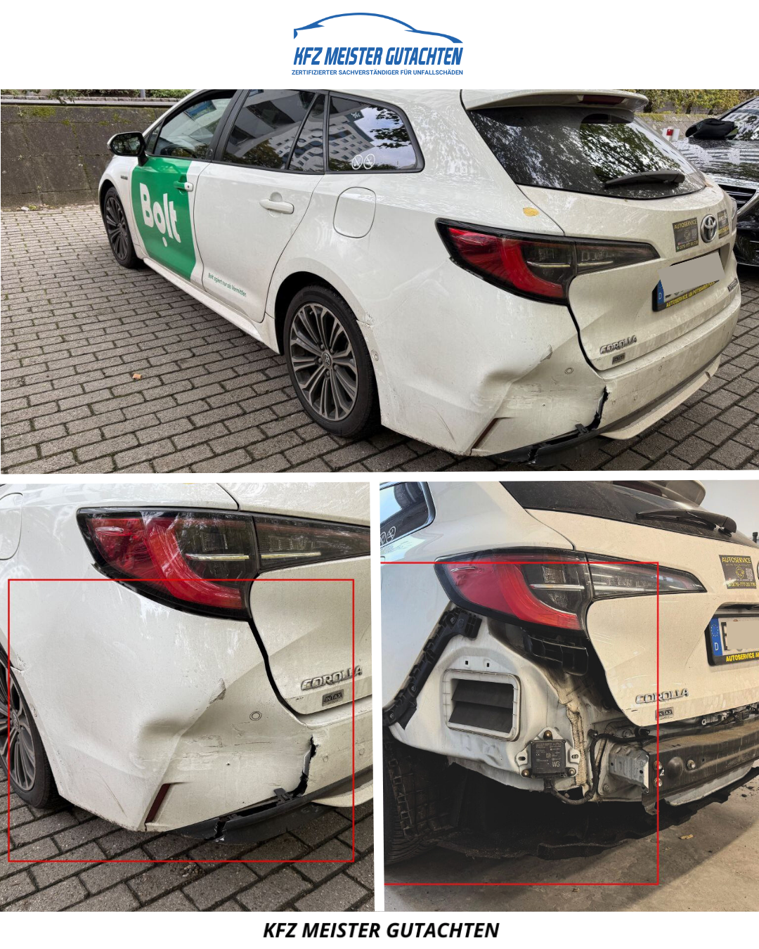 Du erhältst ein vollständiges Gutachten für die Versicherung – inklusive Kalkulation, Wertminderung, Nutzungsausfalltage, Reparaturweg und Beweisfotos.