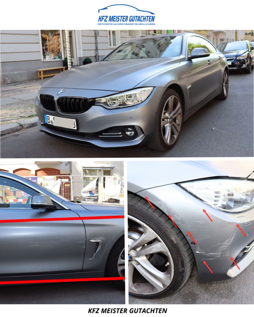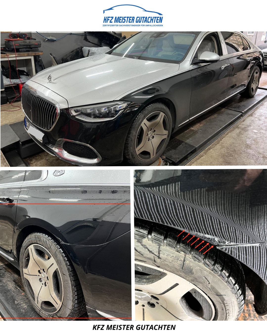 Wir kommen zum Fahrzeug, fotografieren es, messen die Schäden und bewerten den Reparaturumfang.